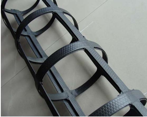 鋼塑土工格柵在瀝青路面中起到骨架作用的作用。瀝青混凝土中的集料貫穿網(wǎng)格,形成復(fù)合機械鎖緊系統(tǒng),限制集料運動,增加瀝青加鋪層中的側(cè)向約束力,在瀝青加鋪層中相互約束,防止瀝青加鋪層移動,從而達到作用抗車轍。